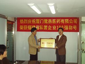 廈門鷺燕醫藥有限公司榮膺“福建省私營企業100強”